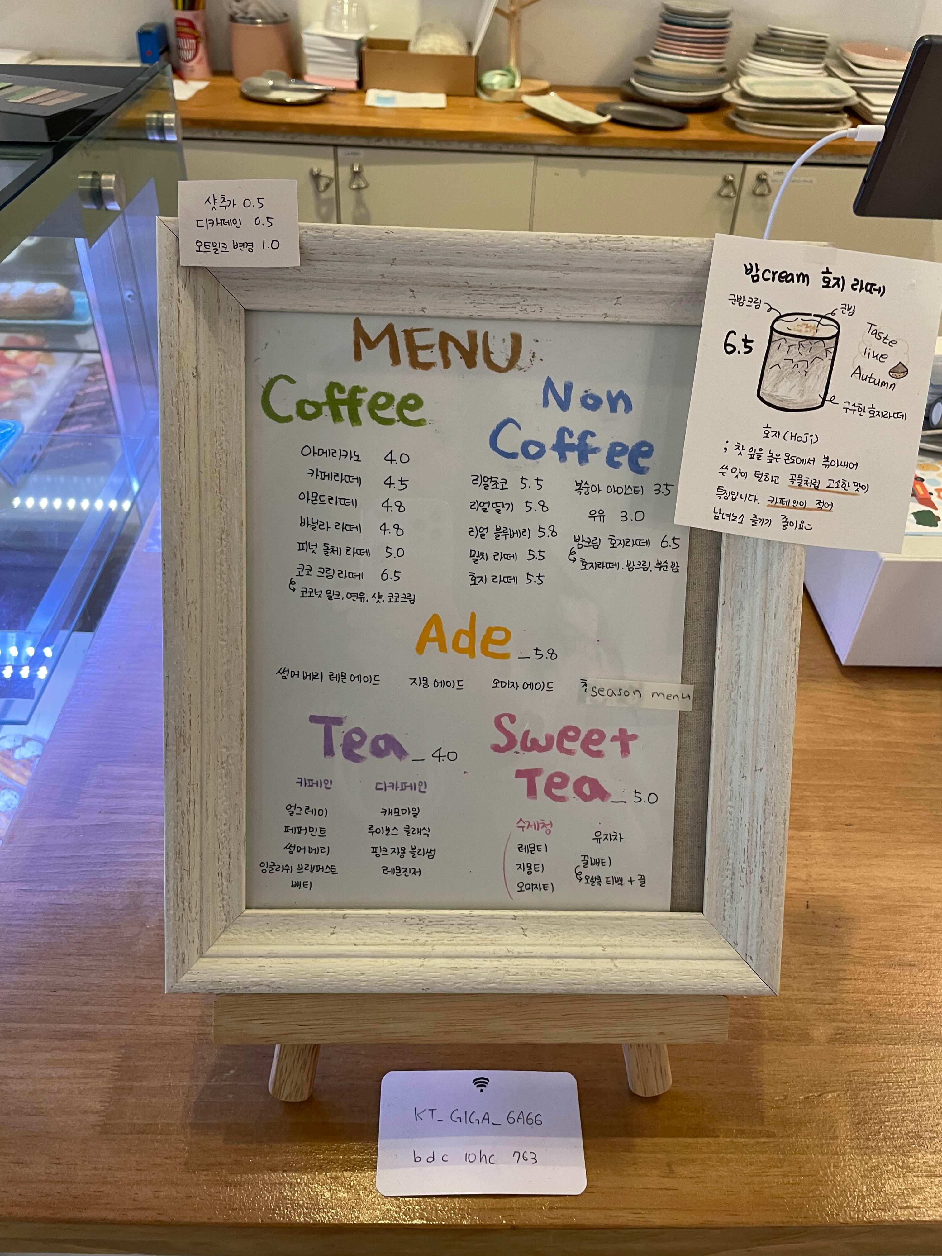 카운터 부분도 아기자기 에끌레어 디저트카페답게 뭔가 프랑스스러운 인테리어였어요 ㅎ